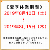 夏季休業期間のお知らせ