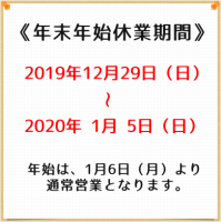 年末年始休業のお知らせ