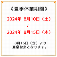 平素は格別のお引き立てを賜り、誠にありがとうございます。誠に勝手ながら、2024年8月10日(土)~2024...